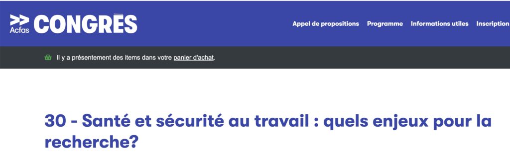 90e Congrès de l’ACFAS – Colloque #30 – Santé et sécurité au travail – Quels enjeux pour la recherche ? 9 et 10 mai 2023