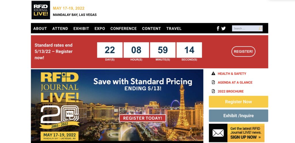 Overview: RFID Journal LIVE! is the world’s largest conference and exhibition focused on radio frequency identification and related technologies. Now in its 23rd year, LIVE! typically features more than 100 exhibitors from 26 countries showcasing best-in-class RFID tags, readers, software and implementation services. Innovative new products are introduced at LIVE! each year, so you will be among the first to see the newest RFID products.