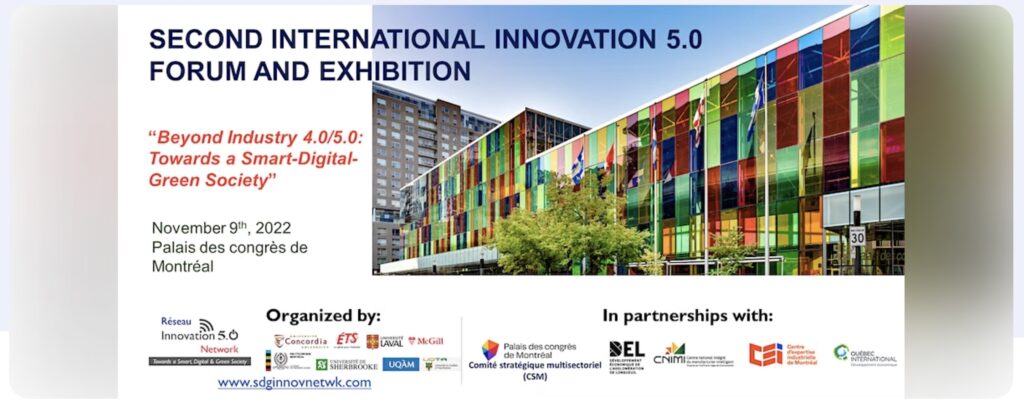 Second International Innovation 5.0 Forum and Exhibition. “Beyond Industry 4.0/5.0: Towards a Smart-Digital-Green Society”. By Réseau Innovation 5.0 Network – Wed, 9 November 2022, 7:00 AM – 7:00 PM EST – inscriptions/registration